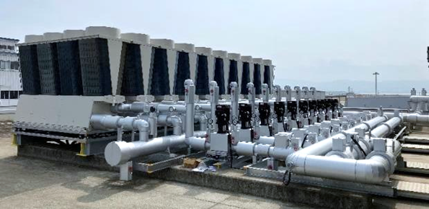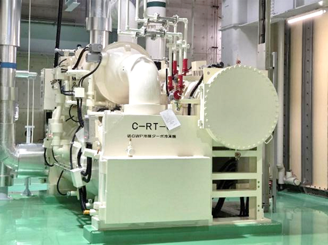設備の高効率化と環境配慮を目的に、2025年度に低GWP冷媒(HFO-1234yf)を使用したターボ冷凍機を導入しました。