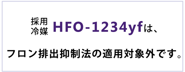冷媒HFO-1234fy自体はフロンですが、フロン排出抑制法上はフロン類に該当いたしません。